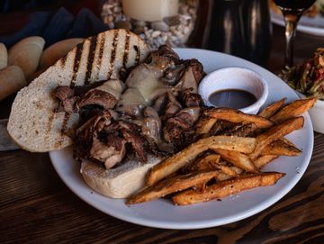 Slow roasted prime rib shaved thin, topped with melted cheese, and served on a toasted 7 inch roll. Accompanied by traditional au jus and a side of fresh cut fries.