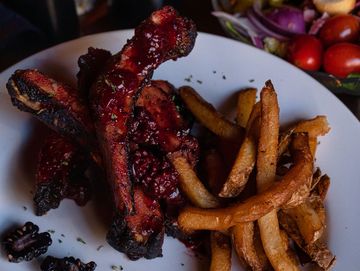Quarter rack of tender ribs, served with sweet and savory blackberry barbecue sauce. Cooked to perfection. Served with a side of fresh cut fries.