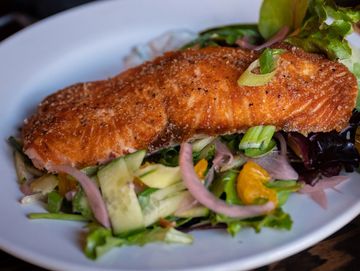 10 oz. Salmon matched with a cucumber salad and house made tzatziki sauce, makes this dish complex and harmoniously balanced.